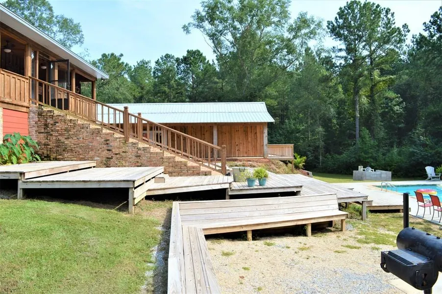 Hunting cabin for sale on 70 wooded acres with frontage on the Topisaw Creek situated approximately 8 miles east of Summit, MS in Pike County, MS. This rustic home features 2 Bedrooms, 2 Baths, beautiful, vaulted ceilings with large exposed beams, ceramic tile floors, granite counters, front and back porches and fireplace. There is also an additional 800 sqft 1 Bedroom, 1 Bath cabin that needs finishing but has wiring, plumbing and sheetrock and has a huge wrap around porch. Outside you will find a gorgeous patio area with an inground gunite pool, outdoor fireplace and underground power, all overlooking trails with game feeders. The 75 X 30 metal insulated shop with 3 roll up doors is a great workshop, storage area and a deer cleaning area with water and drain. The 70 acres has a complete road system and is all wooded with 25 year old planted pine with hardwood mix and is great habitat f...