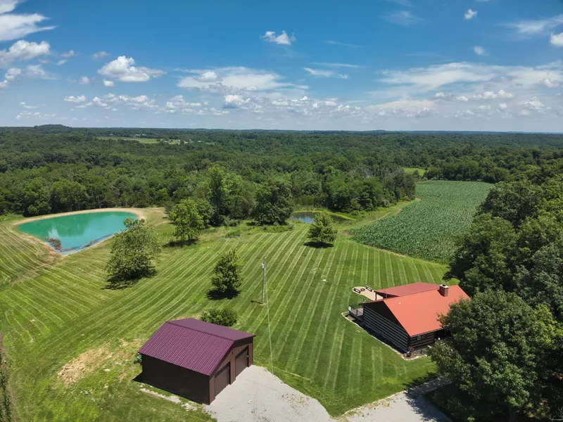 Nestled off the beaten path, this BEAUTIFUL property gives you quiet country living and features a GORGEOUS 2 bed/2 bath cabin! As you step through the door, this place just gives you the sense of being home. Accented with hand-hewn logs, a custom bourbon barrel bar, and reclaimed barn wood, this place combines rustic elegance with natural beauty! Enjoy dinner or a morning cup of coffee in the dining area while taking in the amazing views and watching the wildlife through the large bay window. A large two-bay, metal garage sits a short walk away and gives you ample room to store your implements or all-terrain vehicles. Located in one of the top trophy whitetail-producing counties in the country, this tract also offers approximately 50 acres of income-producing tillable, giving you a potential yearly income stream. Deer sign is prevalent throughout the property, and the seller has impleme...