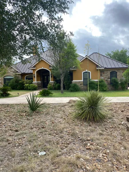 ONE-OF-A-KIND CUSTOM HOME AND ACREAGE NEAR UTOPIA. Magnificent 3 Bedroom 3 1/2 Bath. Two story with multipurpose upper-level bunk room with Balcony overlooking pool/patio area and private theatre room with recreational space and wet bar. Constructed in 2008 with standing seam roof, impressive rock and stucco. Highlighted with Rustic Southwest and Elegant crafted features. Spacious open concept Kitchen-Living-Breakfast Room, Fire place, Formal Dining area, Office and Large Closets. Outdoor kitchen, firepit and leisure area. Appliances convey. Attached garage and an enclosed carport.