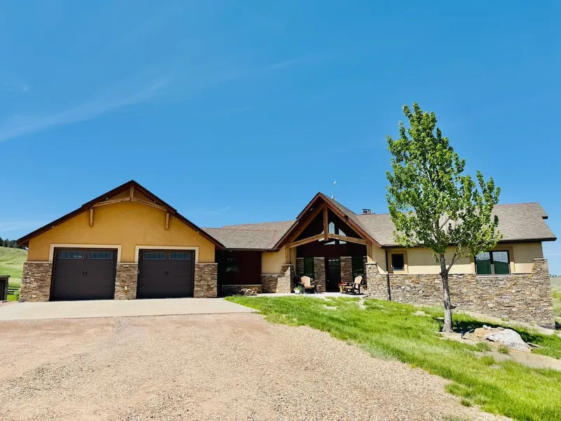 Rustic Charm Meets Custom Craftsmanship on 5 Acres Just Outside Belle FourcheTucked into the scenic countryside just outside Belle Fourche, South Dakota, this stunning 6-bedroom, 3.5-bath custom-built home offers the perfect blend of rustic elegance, modern comfort, and timeless appeal. Set on 5 acres of partially fenced land with breathtaking views of the Wyoming Black Hills, this property is more than a homeit’s a lifestyle.A Warm Welcome with Exceptional Curb AppealFrom the moment you arrive, this home makes a statement. Carefully designed to reflect the natural beauty of its surroundings, the exterior showcases the same detailed craftsmanship and rustic charm found throughout the interior. A blend of corrugated metal, custom wood accents, and handcrafted stonework gives the home a welcoming, grounded aesthetic. Mature fruit-bearing trees and vibrant lilac bushes add color and fragran...