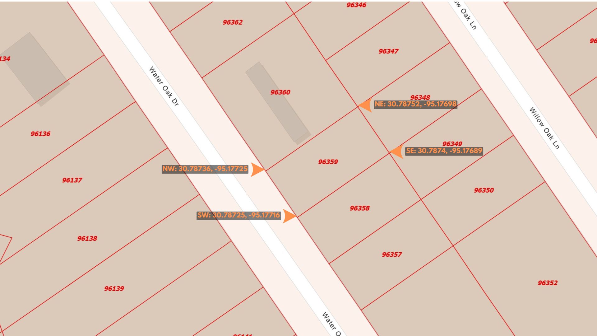 To visit this 0.11 Acre RV-Friendly Lot for Sale in San Jacinto, search J401 Water Oak Drive, Pointblank, Texas, 77364 within San Jacinto County on any mapping app. When you are near the land, search 30.78736, -95.17725 on mapping app to locate one of the corners.