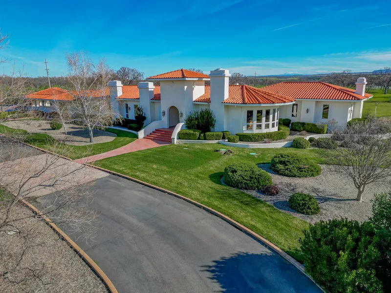 37 +/- acres situated on the west bank of the Sacramento River improved with Hacienda style home affording views and privacy thanks to the surrounding oak-studded hills and acreage. The custom 6,082 square foot single level home has 4 bedrooms, 4.5 bath includes three separate wings adjoined by the kitchen, dining room, great room and library. The home wraps around the built-in pool with multiple French Doors opening poolside. The home has been adorned with high-quality features and luxurious accents, including Honduras Mahogany flooring, doors plus the walls of the elegant library are mahogany lined; 12-foot ceilings throughout home, sided with large windows providing ample natural light and a spacious flair; 5 gold accented fireplaces, located in the dining room, great room, library, powder room and master bedroom. The spacious kitchen is ac...
