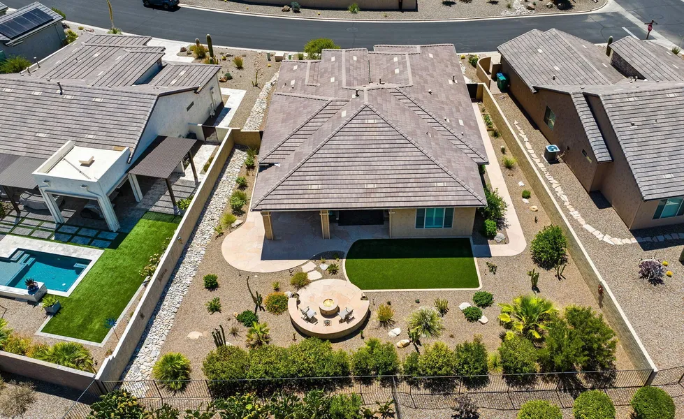 Upgraded Alora model on an expansive lot nearby SaddleBrooke Ranch's abundant amenities. Built in 2019, this property offers exceptional value with all initial major investments already completed (Golf Cart also is included). The property features 2 bedrooms plus a versatile den, 2.5 bathrooms, and an oversized 2.5-car garage maximizing work space and storage. The backyard is a highlight with a spacious covered patio equipped with automatic solar shades, built in fire-pit, and mature landscaping blankets the grounds. It's perfectly positioned lot captures brilliant evening sunsets on the patio.