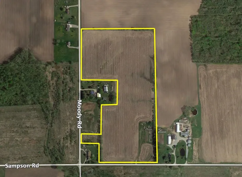 33.4 acres of which nearly all of the property is productive tillable farm land. There are two level and graveled field entrances/approaches for access. The land is currently cash rented for $150.00 per acre for the 2019 growing season and is planted in corn. The cash rent provides a nice return on the investment. This land has no mapped wetlands on it and has serious development potential. Tillable farm land in this area is nearly impossible to find and land that can be developed is even harder to find. Additional land is available.