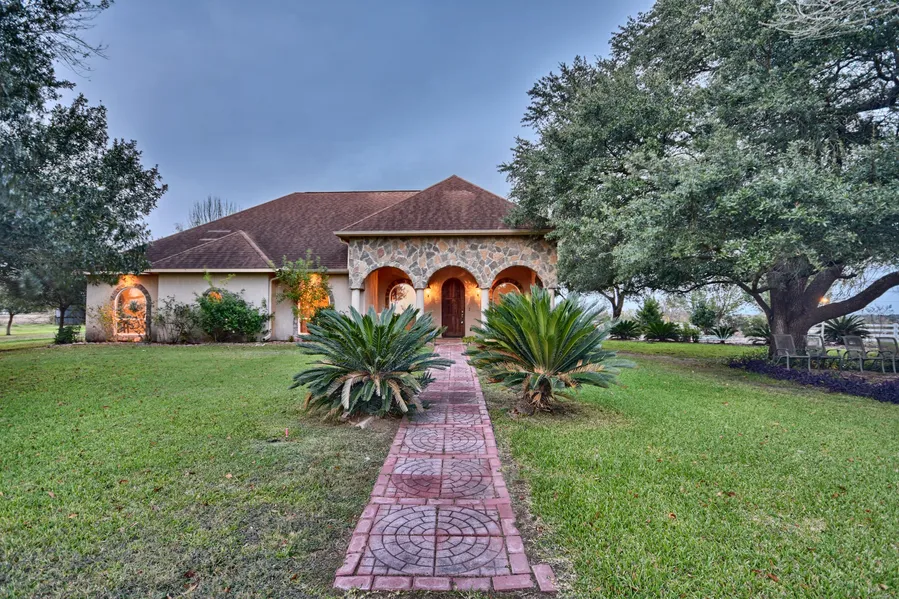 High ceilings, Therma-steel exterior walls w/stucco exterior reinforced roof; floating slab; double pane argon gas-filled windows; 8" base boards; gas or electric dryer options; lighted patio ceiling fans; sprinkler system; monitored alarm system; 40' x 60' Barn with concrete slab and 3 roll up doors and overhang; 828sf small pole barn; Nice Pond; utility room; pool.
