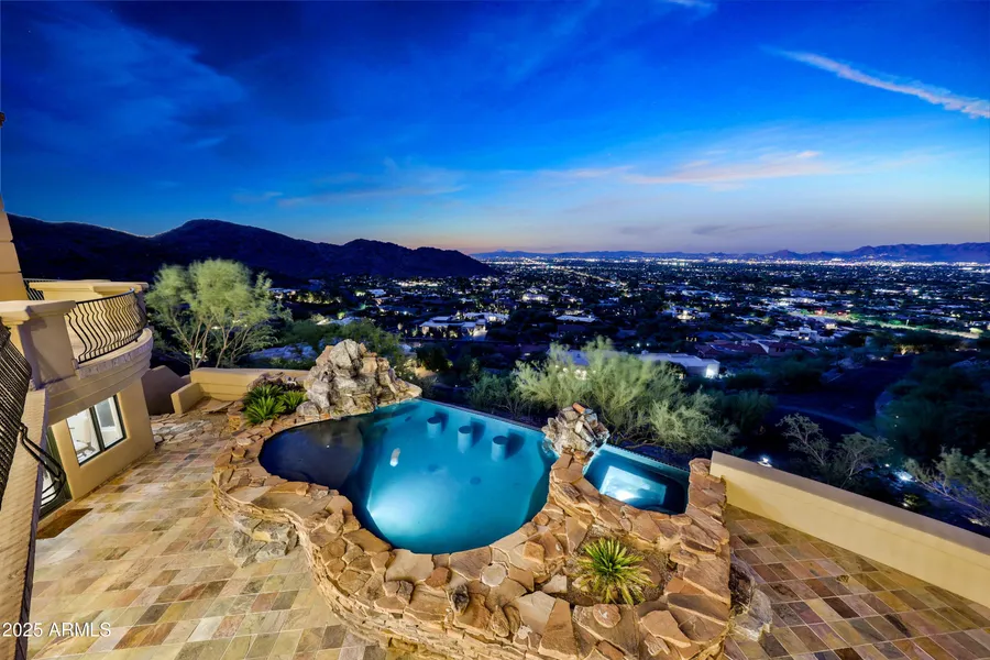 Welcome to this masterfully crafted estate perched atop the Phoenix Mountain Preserve, the HIGHEST hillside home on the mountain. Featuring an elevator and multiple attached casitas, this residence perfectly blends Arizona luxury and privacy with state-of-the-art convenience, offering direct access to the mountain trail system and breathtaking Preserve views. Enjoy indoor-outdoor living with wrap around terraces and a show-stopping one of a kind $50K+ fountain overlooking the city light and mountain views of the valley! Built-in BBQ, fire pit, and artificial turf budding up to the mountain, which can be used perfectly as a dog run or area to play on this hillside home. Updated landscaping and irrigation alongside the negative-edge pool with swim-up bar and spa. Enjoy recent upgrades including a full home automation system with Apple HomeKit integration, five new AC units, updated central...