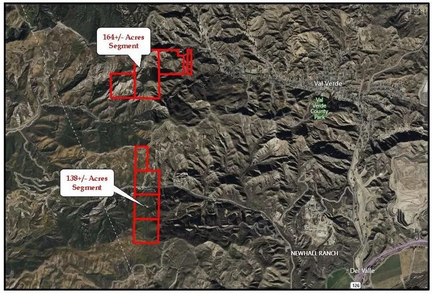 West of the Valencia Commerce and Gateway Industrial centers, off of Highway 126. Two groupings of four APN's, Segments equal 138 acres and 164 acres. Access is provided by a fence with a gate across the private section of Martinez Grande Canyon. The present owner has used the property for their family getaway/camping location. They would haul trailers and toy-haulers for daytime and overnight outings. Hunting (with permits for D-14 zone) is rich with deer, quail and dove. The ~138-acre Segment is adjacent to KLCs SCV 189-acre listing and if combined would expand the hunting opportunities to over 325 acres. Hold for investment, hold for future development, day use recreation, private hunting, mitigation, grazing, and more.