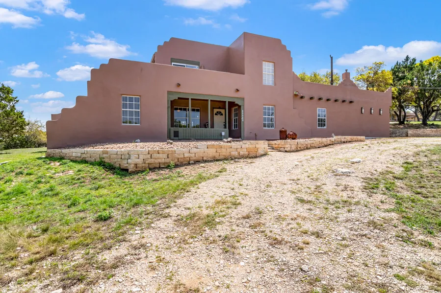 Set on over an acre of naturally landscaped grounds, this one-of-a-kind Santa Fe-style residence offers a rare combination of character, privacy, and Hill Country charm. Surrounded by lush foliage and visited often by local wildlife, the home feels like a private retreat, yet it is just minutes from shopping, dining, and city conveniences. Inside, Saltillo tile floors run throughout much of the home, enhanced by abundant natural light that creates a warm and inviting atmosphere. With four bedrooms and the potential for dual primary suites, the flexible layout is ideal for families, guests, or multi-generational living. A cozy dining room with a fireplace sets the scene for intimate gatherings, while an elevated back deck and a private upstairs balcony off the primary suite offer sweeping Hill Country views, perfect for quiet mornings or evening sunsets. A lower-level deck provides the i...