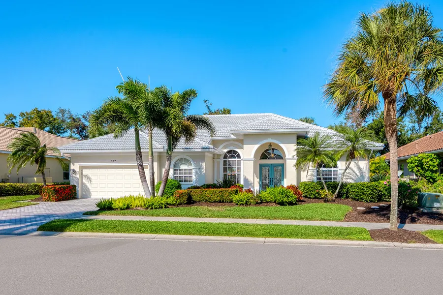 Under contract-accepting backup offers. This stunning Sawgrass Aruba III model offers an incredibly spacious and timeless design, featuring a sought-after floor plan. Restyled kitchen December 2025 to include new stainless appliances and stylish quartz counters. With new roof installed in 2024 and a new air-conditioning system from 2022, this custom J&J home is ideal for those seeking comfort and style. Overlooking a picturesque blend of golf greens, Curry Creek and mature trees, the property boasts a large, heated pool, making it an ideal retreat. Being sold turnkey furnished, this home allows you to start enjoying the Florida lifestyle immediately. Breathtaking views from living and family rooms. The layout includes three generous bedrooms, two full baths, and a den/office, all designed in a fabulous split plan to maximize privacy. Stately vaulted ceilings enhance the feeling of openne...