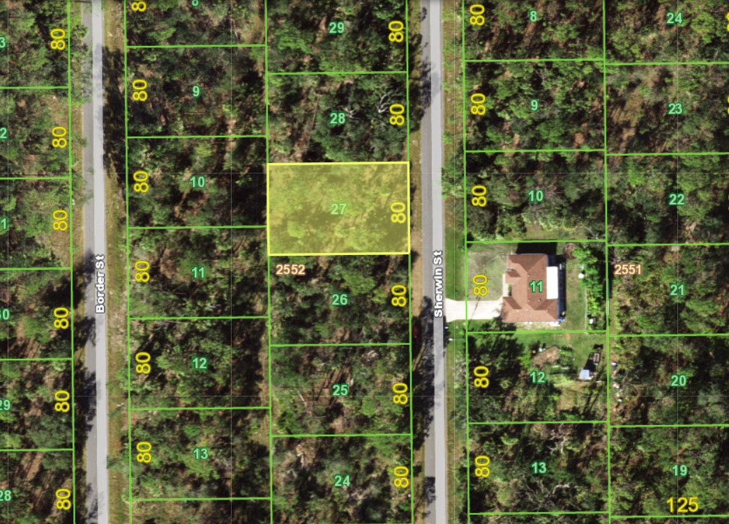 Coordinates: NW corner: 27.0162, -82.1953 NE corner: 27.0162, -82.1949 (Road) SW corner: 27.016, -82.1953 SE corner: 27.016, -82.1949 (Road)
