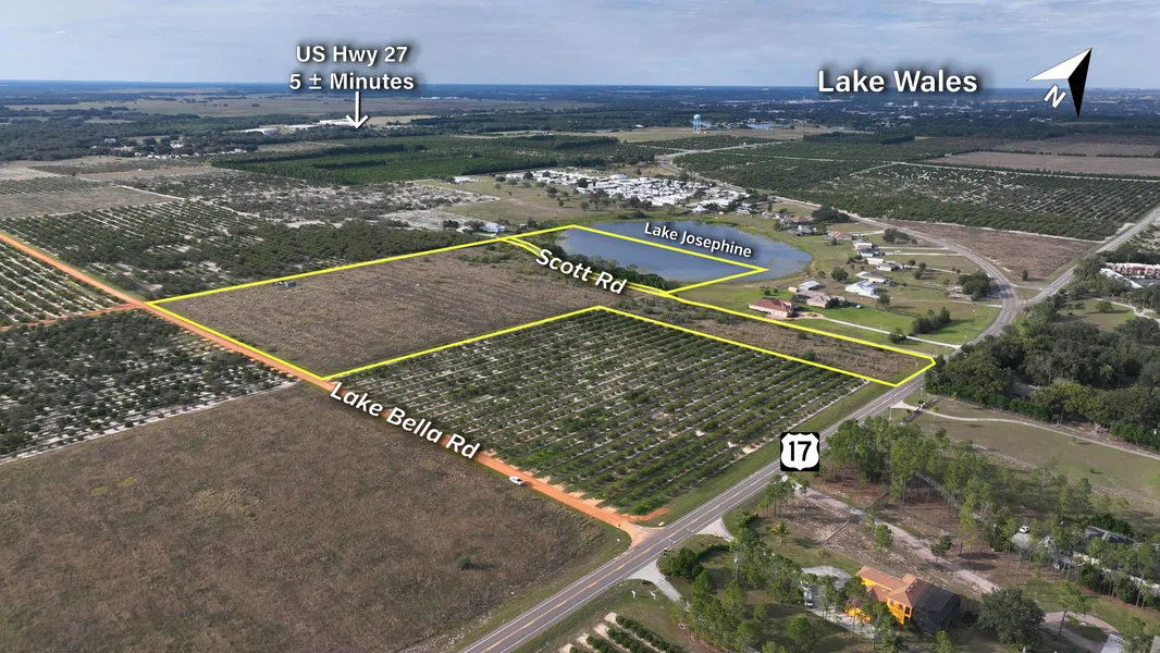 Approximately 22 acres located in south Lake Wales along US 17. This site is formerly an orange grove with potential for residential development. About 3 acres are in the lake. The property has frontage along Scott Road, Lake Bella Road, and US 17.