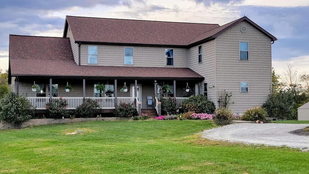 Welcome to Schmucker Farms, a one-of-a-kind family farmstead offering the best country living. This property features a spacious Amish-built home, a large pole barn, a horse barn, tillable crop fields, pastures, and access to municipal water, along with exceptional deer and turkey hunting. The home spans 6,688 sq ft, including the basement, and offers up to 9 bedrooms, 3 full bathrooms, and 1 half bath. It is fully connected to municipal water and wired for lighting and fixtures. The home has hot water-heated floors and is additionally warmed by a large wood-burning stove housed in an outdoor shed, ensuring cozy living year-round. The basement is an expansive 64’ x 31’ space that opens to an exposed aggregate patio. Above this patio is a large back deck/balcony that overlooks the scenic back acreage and beautiful Southeast Indiana sunsets. The 3,200 sq ft pole barn features concrete floors and multiple large doors. There are about 12 acres +- tillable fields and several acres of pasture around the house and horse barns. About 30 acres +- of recreational wooded land offers fantastic hunting opportunities typical of Switzerland County. A large elevated hunting blind will remain on the property in the back cornfield. The historic 100-year-old horse barn, built with massive timbers, reflects the rich farming traditions of the area. With approximately 1,150 feet of road frontage, the northern fields could easily be divided into building lots with private driveways and conveniently located less than an hour from Cincinnati and within two hours of Indianapolis, Lexington, and Louisville. This property is also situated in a Governor Opportunity Zone, offering federal capital gains tax benefits under the Tax Cuts and Jobs Act of 2017. Showings are by appointment only for pre-qualified buyers.