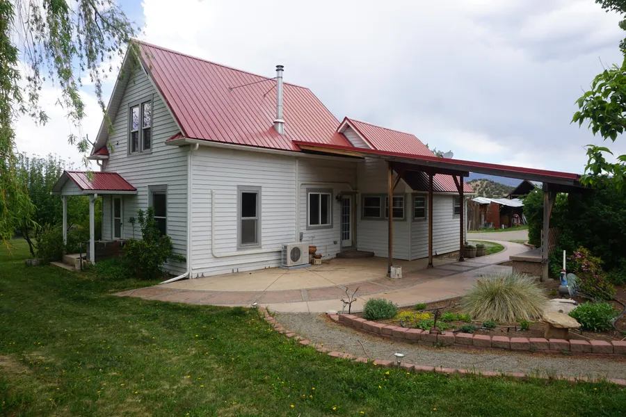 Picturesque Small farm at the foot of Mount Lamborn just South of the town of Paonia Co. The farm is on 28 acres with good priority water rights, a Paonia water tap and a well. The land is fenced and cross fenced into 5 separate hay/pasture areas. The irrigation for the fields is delivered via a pumping station from the collection pond to underground lines with risers to attach the K line sprinklers. The house and gardens are also irrigated from the pond by a separate pump. It is efficient and simple to operate. There is also a lavender field with mature plants. Around the house and lawn is an assortment of fruit trees, multiple gardening areas and raspberries all watered with sprinkling systems. The house is a charming farmhouse built in 1904 with updated wiring, plumbing, metal roof, foundation, windows and storm windows. There is a master bedroom with an adjacent full bath next to it, another bath with steam shower on the main floor and two smaller bedrooms upstairs. Hardwood floor and beautiful old fashion wood trim featured throughout. Kitchen has been updated and there is an adjacent canning kitchen. Outside is a covered patio, complete gutters and downspouts. Heat is natural gas hot water baseboard from a new boiler, plus 3 mini split units for heat and A/C but primarily used for A/C. Also including a nice wood stove. The electricity supplies the house, the out buildings and irrigation pumps. The solar system covers the majority of all the electrical needs and is on the roof of the outbuilding by the lavender fields the Solar Barn is a multiple use building in very nice condition that has been used to process the lavender. Other outbuildings include 24 ft yurt with wood stove, a heated greenhouse, adjacent heated and insulated work area, a grain bin, equipment shed, chicken coup, heated workshop, animal sheds and a classic old barn. Tractor and equipment can be available in separate agreement.