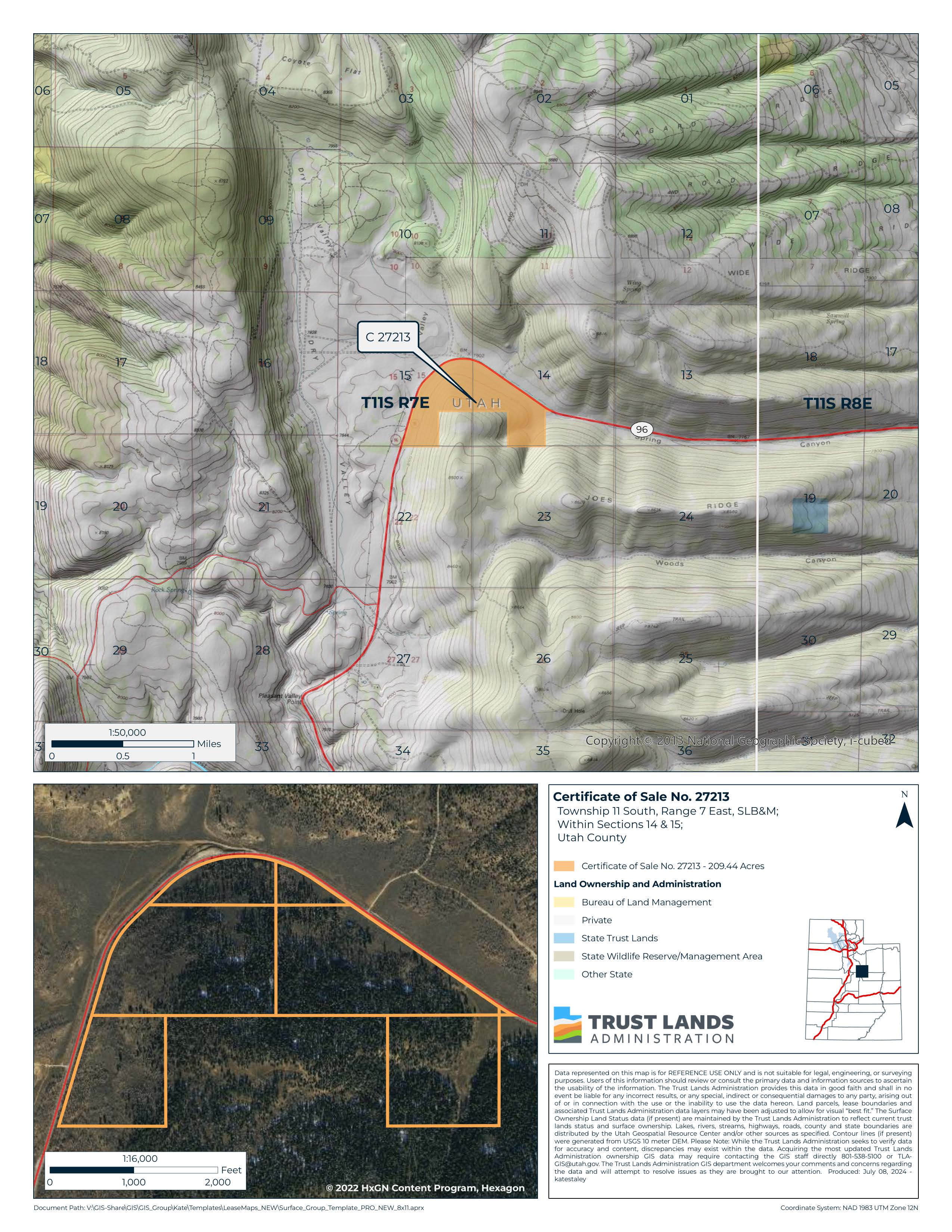 Utah Trust Lands Administration is selling property near Scofield Reservoir at an online public auction, to be held November 14-19, 2024. This beautiful property contains approximately 209.44 acres and borders State Road 96. The Scofield Recreation Area is located 3 miles from the western edge of the property. The minimum acceptable price has been set at $845,000. Financing is available.