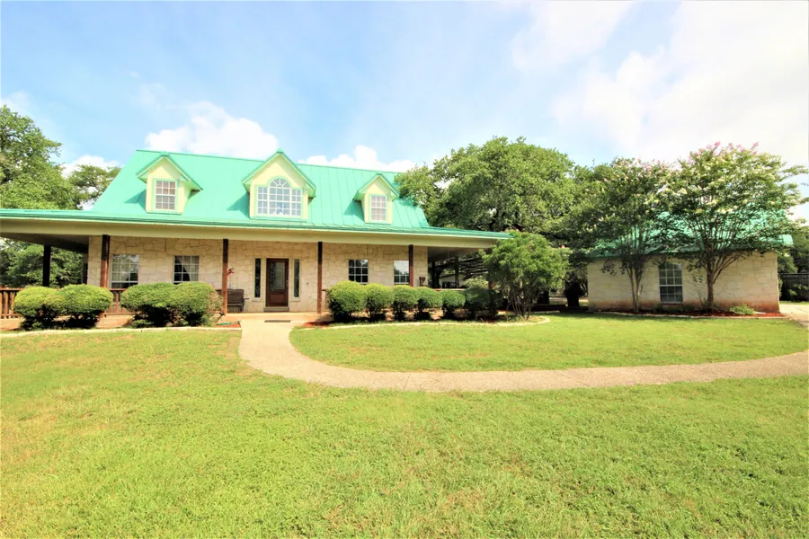 Rural Texas Living Hill County Home on 11 acres. The builder was a Renowned Home Builder who build in the Parade of homes in San Antonio & High-end Dominion County Club area. Fenced/cross fenced w/security gate. AG Tax Value. Heritage oaks and great outdoor living spaces! The wrap-around porch welcomes you into the two-story Home that flows into the main living area. Floor to ceiling rock fireplace & a kitchen with built-ins & center island, Secondary heat & air living/theater rm. 21'X21'Detached Game Rm/ Office, 3 space carport.Great Horse property, 3 stalls Horse Barn, feed/Tack Rm. Hay Loft & separate 4H shed & corral. Several Storage Builds. SQ. Ft. includes a detached game room of 529 sq ft with heat & air. 3250 Sf. per owner. Verify Taxes, square feet & School District.