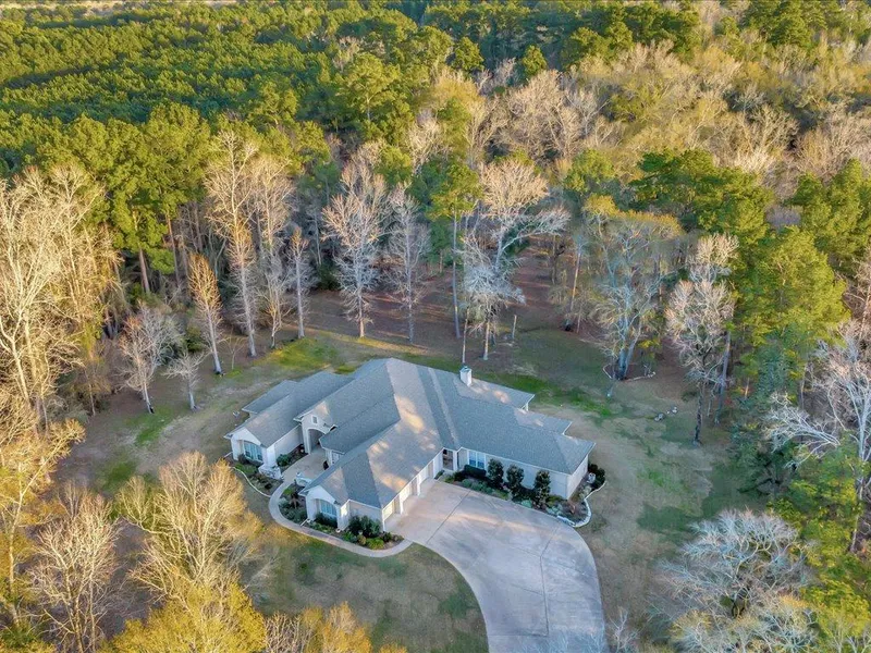 Gorgeous and secluded!! 4 bedrooms and 3.5 baths on 7.7 acres! The elevation lends to an extra level of privacy! Sprawling one story feels even more spacious with high ceilings and large rooms. Enjoy the wooded view through the wall of windows on the back of the home. Great kitchen with bar seating, island and walk in pantry! Butler's pantry adjoins the dining room to kitchen. The primary suite is just the retreat youve been looking for! Large walk in shower, separate tub and an over-sized walk in closet with built ins. See in person to truly appreciate what this home has to offer!