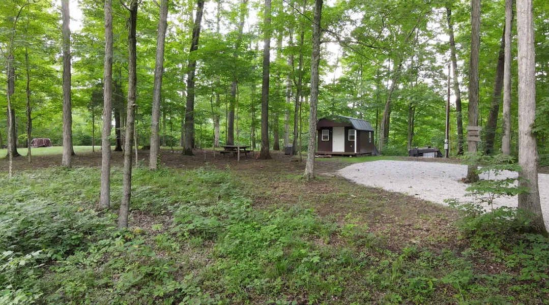 Check out this great recreational property featuring a well-built secluded cabin in the woods with electricity and plenty of room for additional guests! Located at the end of a private road with deeded easement access, this property sits at the dead end of a small cabin community consisting of 4 other landowners. Passing through the entrance, you’ll travel up the nearly 1/3 mile easement road to the edge of the property where you’ll find an awesome little one room cabin that features a great outdoor deck area, loft space, hide-a-bed couch and metered electrical service already hooked up. County water is available at the county road, a well could be drilled, or the cabin could easily be plumbed for a rainwater harvesting system. A nice mulched patio area with a firepit provides a great outdoor space for grilling and relaxation and the adjacent outhouse provides eco-friendly privacy when nature calls. An established walking trail system meanders through the woods, providing great access to the remote corners of the property. Additional graveled parking areas have been created and provide plenty of room for campers or recreational vehicles and RV electrical hookups are in place. This property sees regular wildlife sittings and sits adjacent to 800+ acres of Hoosier National Forest, providing seemingly endless acres to roam and explore. If you enjoy forging for your food, all manner of wild edibles can be found on and around the property including great mushroom hunting. The timber on this property is quite exceptional with several wildlife beneficial tree species and marketable varieties located throughout the acreage. If you’ve been searching for a family getaway property or a turn key remote hunting camp, you should certainly take a closer look at this listing!