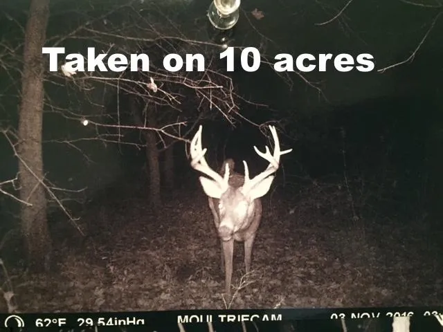 PRICE REDUCED!!!!! Have you ever wanted to live in the county and have giant bucks, turkeys or other wildlife in your back yard almost every day? This 10 +/- acres is a natural highway for whitetails especially during the rut! These 10 +/- acres are the only cover for the bucks to get from North to South and there is giant blocks of timber all around it.