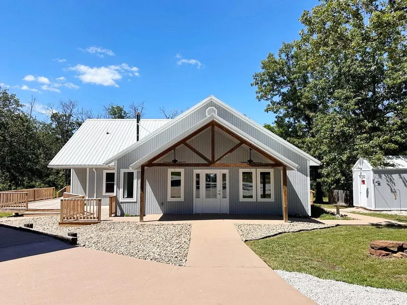 Just a few miles from beautiful Stockton Lake is a stunning property you wont want to miss. Beyond a long, private driveway is a high-end homestead that is self-sustaining, ADA accessible, & gorgeous. This 2,020 ft2 home is modern, functional, spacious, & attractive. The vaulted ceiling & hybrid wood burning stove in the open kitchen, living, & dining area create a comfortable & inviting space. The kitchen features quartz counters, tile accents, high-end appliances, a stainless farm sink, & a stainless island. The entire home features durable, easy-to-clean, & timeless wood-look ceramic tile floor. A recent 520 ft2 addition has never been lived in & flows seamlessly with the original home. The new space includes a luxury master suite featuring an oversized bedroom, a private lounge (could function as a 3rd bedroom), a giant wa...