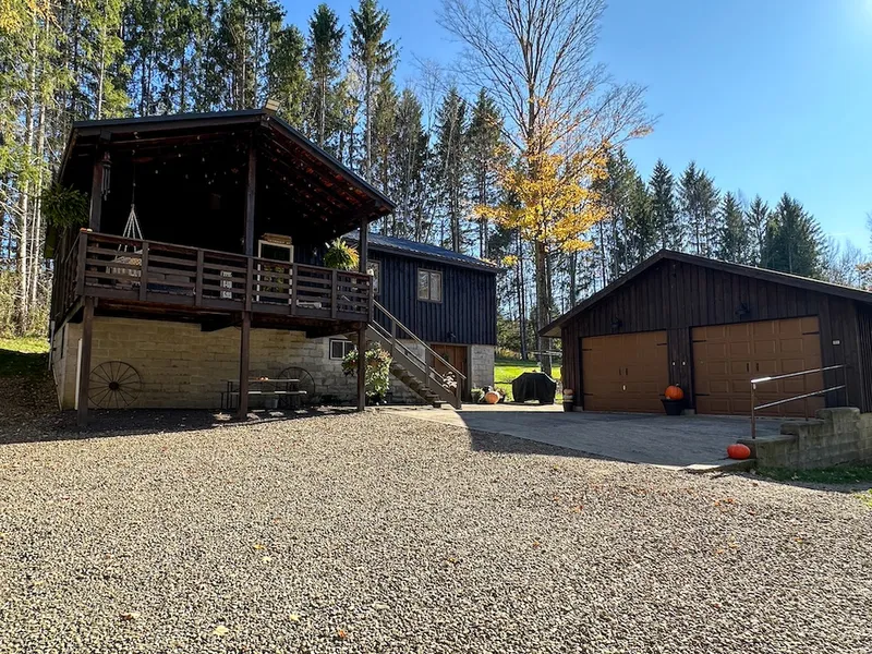 Secluded in a boundary of trees, this beautiful and newly renovated home with a detached garage is a must-see. Located nearest Belmont, NY, in Allegany County, this home is accessed via a private gravel driveway that leads to an approximate 1,200 square foot home accompanied by a shed and two-car garage. The basement area is an open concept with one full bathroom, leaving plenty of room to finish to your liking. With all rooms newly renovated, the upper level boasts an open-concept kitchen with a butcher block raised bar. The kitchen has black stainless steel appliances, which include a refrigerator, dishwasher, microwave, and propane cookstove with a vent hood that provides an air fryer option. A full bathroom is located between the kitchen and the stairway to the basement. The living room is the center of the home, with two adjacent bedrooms inclusive of closets finishing the living ar...