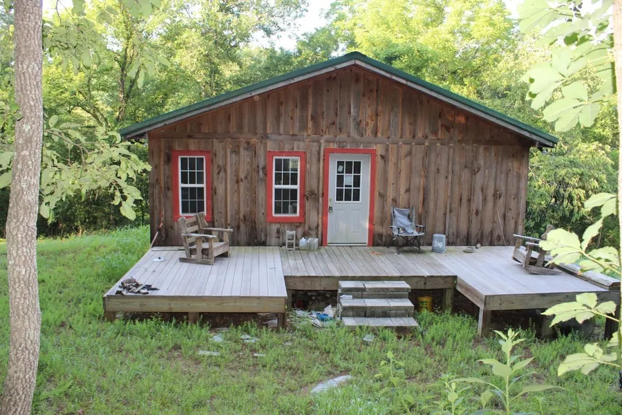 SECLUDED END OF THE ROAD PRIVACY!!! Nestled in the hills of the Ozark Mountains you will find 28 +/- acres of recreational, timberland, hunting land. For the avid hunter there is an abundance of wildlife in the area consisting of whitetail deer, turkey, bear, and numerous small game animals. The property has marketable timber consisting of hardwoods, walnut, and native cedar. Property has year round springs, outcroppings of rocks and borders Bratton Creek for over a 1/4 of a mile. Plenty to explore and enjoy. You will also find a new under construction partially finished 896 sq. ft. cabin sitting on top of a 576 sq. ft. walkout unfinished basement. Finishing both spaces would offer 1472 sq. ft. of living area. Construction is at the point to where you could finish the cabin to your own preference. The unfinished Basement could be utilized in many different ways such as additional living...