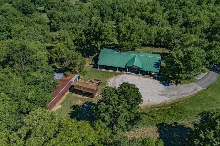 The land features a 100+ elevation from the gate to the back corner. Home rests 70 higher than the road, offering beautiful views throughout the seasons. The property is cross fenced into three tracts, with the 2 larger tracts on either side of asphalt/gravel driveway, both containing stocked ponds. Native pecan trees cluster throughout the lower elevations with various nut tree varieties in the upper elevations draw in local wildlife. Current owner leases land for cattle grazing a small herd which ends with sale of property. 30x50 metal shop sits near the entrance of the gated driveway, ideal for storing and maintaining equipment. Near the home, 12x40 barn sets with stalls currently used as storage, with connecting loafing shed behind. Additional 20x20 barn nearby suited for additional agricultural needs of the new owner.