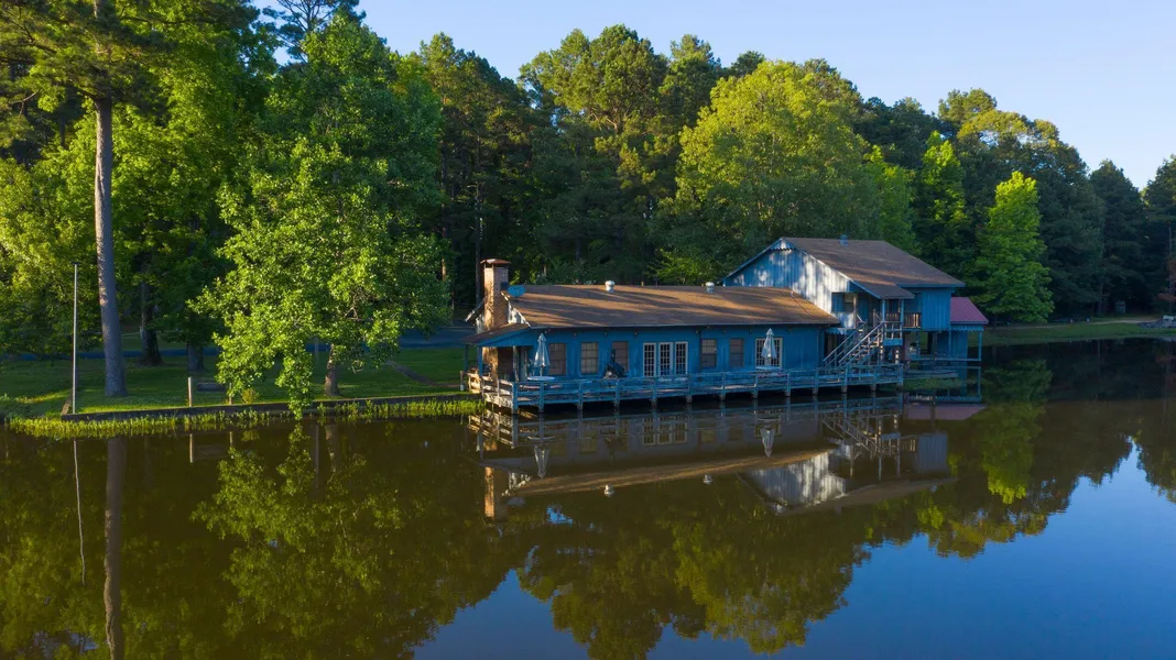 - - A boat house connected to the lake house includes 2 slips, an enclosed storage area for fishing gear and a patio with a fire pit for conversation and enjoying the serenity and peaceful charm of the lake
