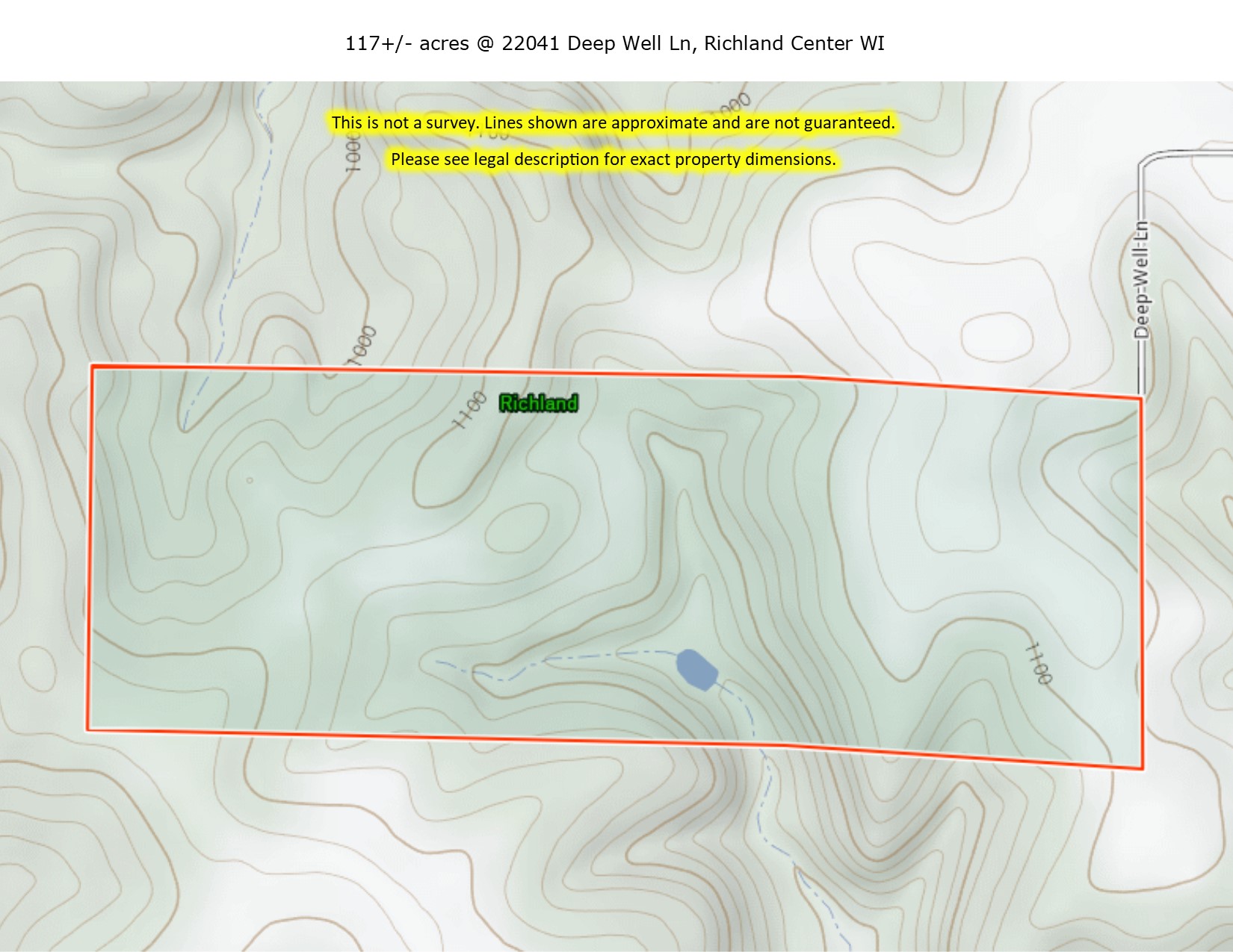 Research Parcel InformationFrom Richland Center, west on Hwy 14, left on County Road KK, right on Deep Well Lane, keep left when road forks