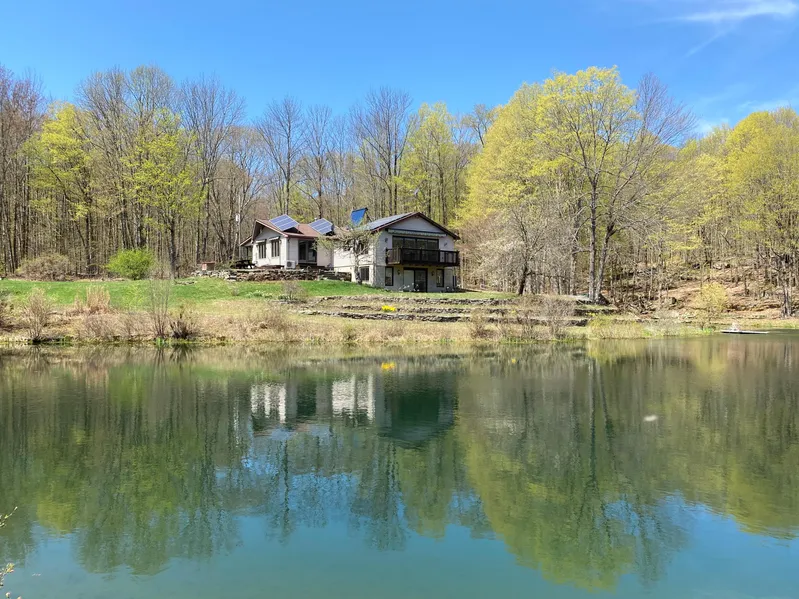 Private yet convenient sportsmans dream property! Offering energy efficient 2/3 bedroom, 2 bath, pond side home. Features spacious country kitchen, bright and airy living/dining room, family room with fireplace, full basement with workshop, and 2 car garage, plus 2 barns/garages! Trails traversing property and only minutes to 200 acre powerboat lake!