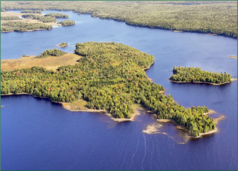 The propertys terrain is flat to gently rolling. The southern peninsula offers the highest terrain where a modest knoll offers greatest potential for lake views to the north, south and east, with some tree-clearing. The forest supports a softwood species composition of red spruce, balsam fir, white pine, and northern white cedar, with a lesser mix of hardwoods (red maple, aspen, white and yellow birch). From a wildlife perspective, the patchwork of young forest age classes provide habitat for deer, moose, snowshoe hare, ruffed grouse and woodcock.