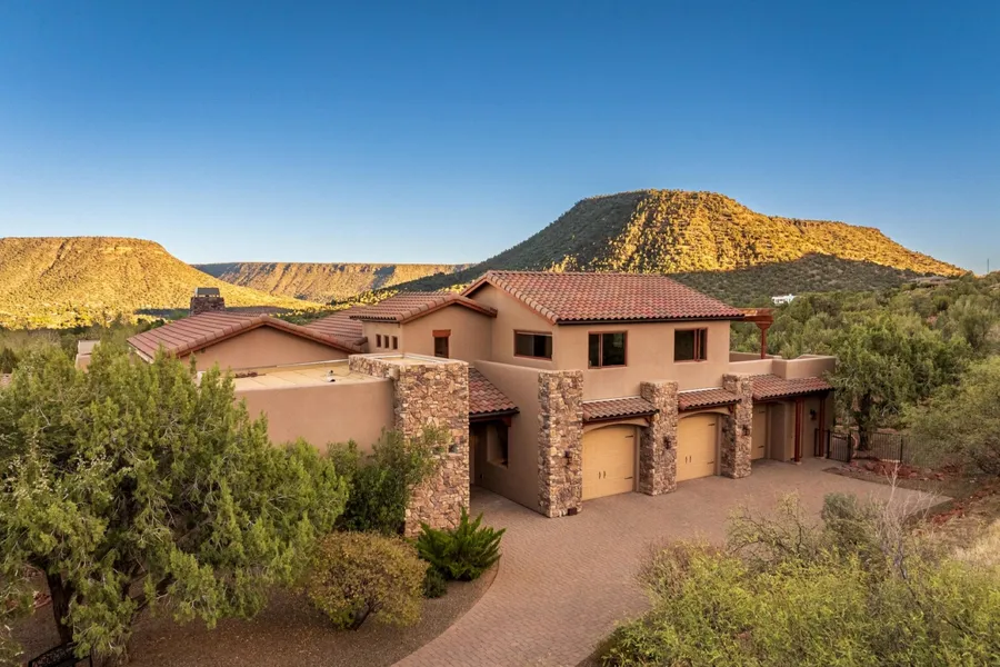 Set amidst the custom homes in the Sedona Golf Resort, this stunning SW style residence highlights exquisite design & beautiful Red Rock vistas. Boasting over 5000 square feet of sumptuous living space, this home seamlessly blends luxury & function. Experience the many framed red rock views & enhanced privacy afforded by backing to the National Forest Service. The single- level main house comprises 4 BR, 3.5 bath, 4268 sq. ft. plus a 756 sq. ft. - 1 BR, 1 BA Casita (over the garage) & a fabulous 3 car garage w/ workshop area & ¾ bath. This home features a geothermal heating system - which uses the earth's constant underground temperature to heat & cool homes (a renewable energy source). This home was crafted to be welcoming & luxurious haven. See supplement for more information!