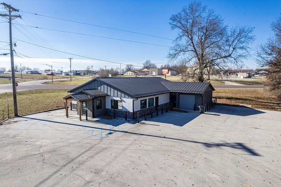 This property will be sold at auction on December 3rd in partnership with George Auction Services. A 4% buyer's premium will apply, and the property is being sold as-is with a 30-day closing. A 3% non-refundable down payment will be required from the winning bidder. Prime retail/commercial property offering 21,780 sq ft of land with a 2,912 sq ft single-story building featuring an open retail area, private offices, conference room, break area, storage rooms, and two restrooms. The building includes an attached garage with overhead door, and the asphalt lot provides 15 striped parking spaces plus 3 motorcycle spaces. Zoned C-2 Commercial, the site has frontage on both Airway Drive and Highway F with excellent exposure and accessibility, including a traffic count of approximately 8,000 cars Recent updates give the property a clean, modern appearance and it is well suited for retail, office...
