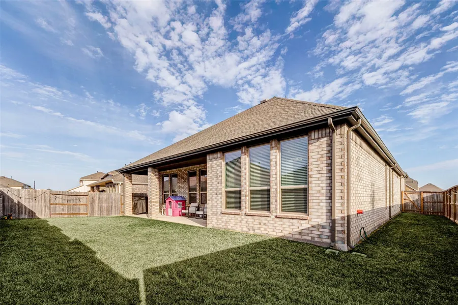 Beautifully designed 4 bedroom plus dedicated office, 2.5 bath home nestled on a quiet cul de sac and uniquely positioned beside a neighborhood park with open green space and playground just steps from your front door. Light filled open concept layout with soaring ceilings and a stunning island kitchen that serves as the true centerpiece of the home, seamlessly connecting the living and dining spaces for effortless entertaining. The spacious primary retreat offers a bright and relaxing escape, while a secondary bedroom with private en suite bath adds versatility and elevated comfort. Zoned to Lamar ISD and conveniently located near local schools with quick access to major highways, shopping, and dining.