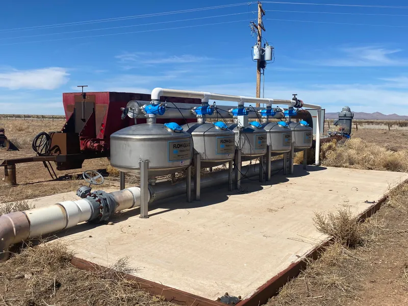 This 652 acre farm comes with 1,093.5 acre feet of Water Diversion rights for irrigation, 2 diesel wells produce roughly 1,600 GPM (simple to tie together), of which a 150HP well produces 1,000 GPM, and a 100HP well produces 600-700 GPM. There is an old windmill well as well by the cattle corrals. The irrigation water is cleaned through a 5-Pod Media Filter set Up.