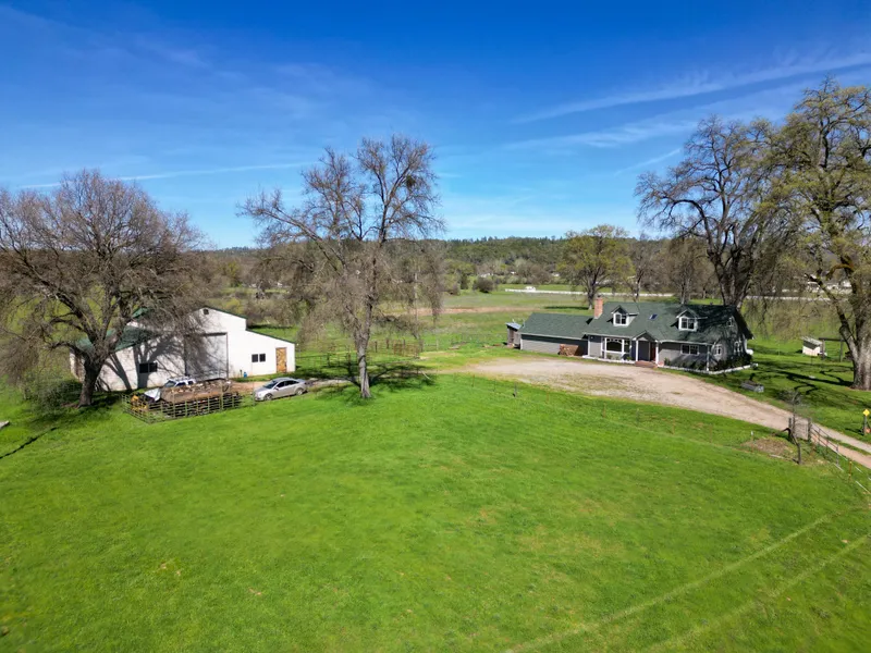 Introducing a captivating farmhouse retreat nestled on 17+ sprawling, pastoral acres in the serene enclave of Penn Valley. This charming abode boasts an enchanting year-round creek with riparian rights & seasonal pond, offering a picturesque backdrop to country living at its finest. Step inside the remodeled 4-bedroom, 2-bathroom home, where modern comforts harmonize with rustic charm. The heart of the home, a spacious kitchen featuring granite countertops, a greenhouse window, and ample cabinetry, invites culinary inspiration. The primary bedroom, conveniently located on the main level, boasts a cozy sitting room and a generous walk-in closet. Experience the essence of outdoor living on the expansive composite deck, overlooking lush pastures, shaded by majestic Oaks, offering breathtaking sunrises. A 2400-square-foot barn/shop, complemented by a large, fenced garden teeming with fruit t...