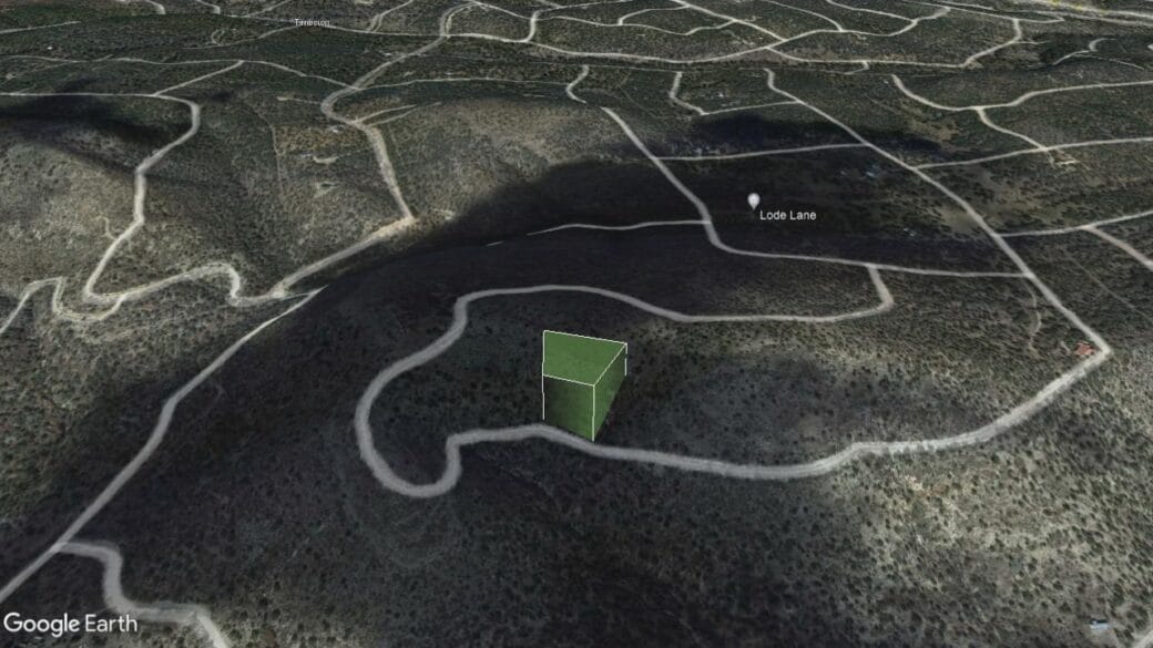 The land gently slopes upward from the southern road to a higher ridge in the north, giving you beautiful views of the forested hills and distant valleys. Youll find native trees, desert plants, rocky soil, and open grassy areas a rugged and natural mountain setting.