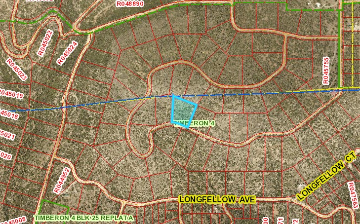 Power is visible along Longfellow Road but not directly to the lot. Going off-grid is the best choice here, using solar panels or generator. Sits on 209-131 Mountainaire Dr, Timberon, NM.