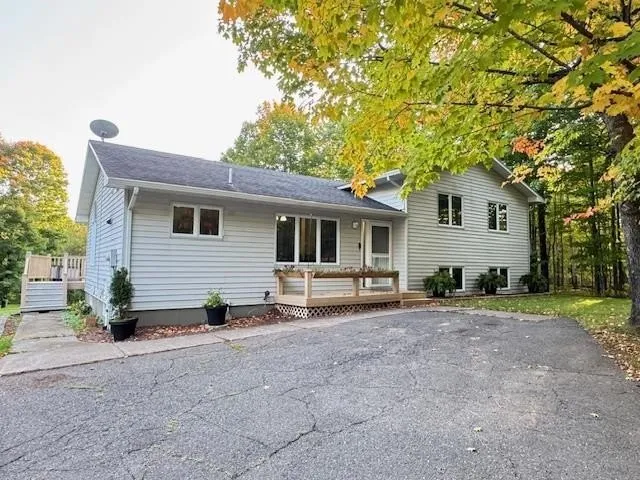 Open House, Saturday, October 25th from 1-2:30 p. m. Your Fall Paradise Awaits in Rural Hermantown! Nestled among vibrant maple trees on a serene 5-acre lot, this spacious multi-level home offers the perfect blend of privacy, comfort, and convenience. Built in 1992, this well-maintained home features 3+ bedrooms and multiple versatile living spaces, designed to fit your lifestyle and grow with your needs. Step into a warm and welcoming entry that opens into a bright kitchen and dining area, flowing into a cozy, fun-filled living room. From here, walk out to the 3-season screened porch and deck — ideal for relaxing evenings, morning coffee, or outdoor grilling while taking in peaceful backyard views. The upper floor features 3 generous bedrooms, a full bathroom, and a convenient laundry area. The primary suite includes its own private deck, creating a perfect personal retreat. On the first lower level, enjoy a comfortable family room with gas fireplace, built-in cabinetry, and walk-out access to the patio and hot tub. You’ll also find an updated ¾ bathroom with tile shower, plus two additional rooms with closets and windows — perfect for guests, home office, or hobby spaces (note: windows are slightly below legal egress size for bedrooms). The basement level features a newly finished, oversized recreation room — great for a playroom, home gym, or media center — plus a large utility area with mechanicals, ample storage, and a second laundry area. It’s the kind of bonus space most homes are missing! Set back from the road with a paved driveway, the home offers privacy and space to roam. The 3-car detached garage has one heated workshop stall and includes additional storage behind. The gently rolling lot features low-maintenance landscaping, with room to personalize for garden lovers or outdoor enthusiasts. Only 4 miles to Hermantown Schools and just a short drive to shopping, groceries, and recreation like Pike Lake. If you're looking for a peaceful retreat with room to grow — and all the comforts of home — this property is ready to welcome you. Don’t miss out on your autumn dream home in Hermantown! Non-conforming septic does not require replacement. Drilled well. Electric: $165/mo average Propane: 792 gallons delivered last heating season
