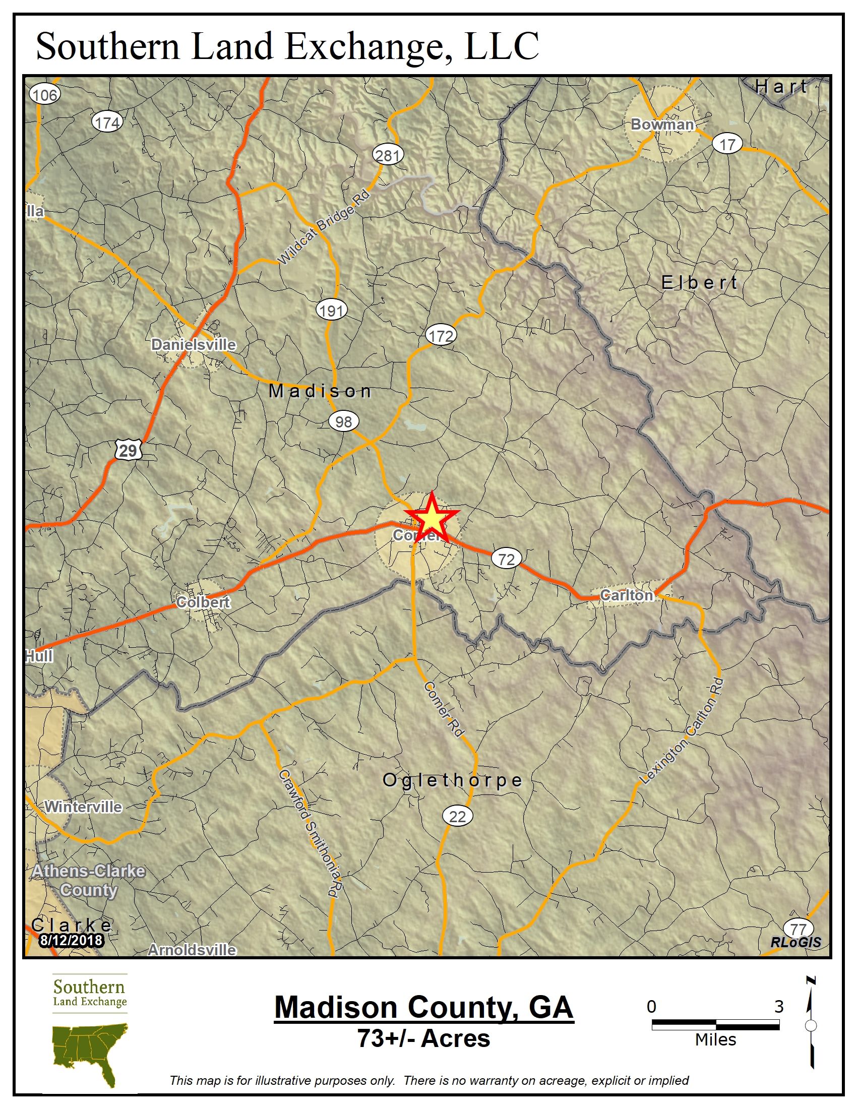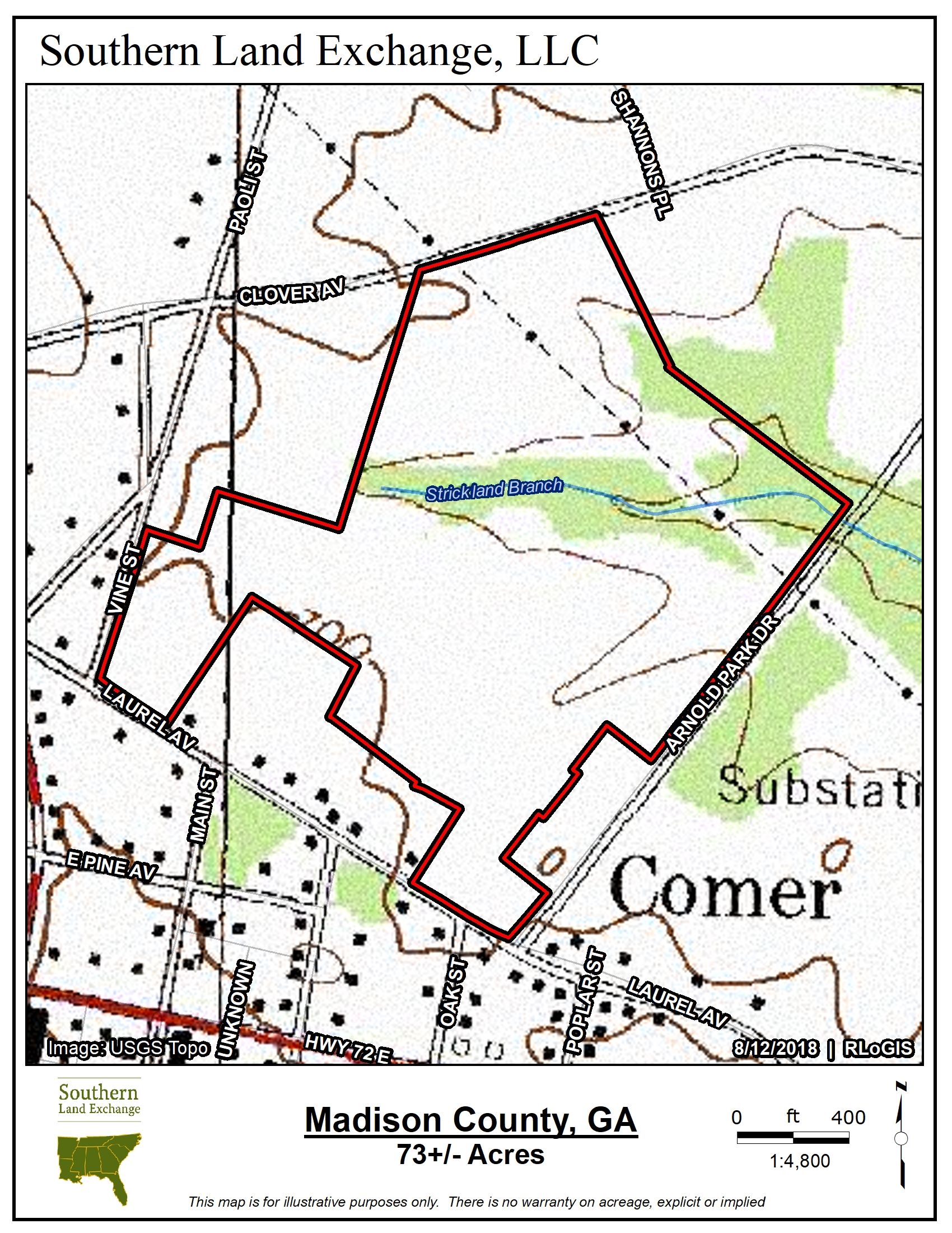 Unique Comer, Georgia property located in south central Madison County approximately 20 miles east of Athens/UGA. Shannon's Place touches four different roads and possesses decent road frontage on each of them. The property is primarily covered in a mix of hardwoods and pines with approximately 55 wooded acres and 18 open acres. There is also a small creek running through the property. Shannon's Place could be perfect for a number of uses whether it be a beautiful private home site, or developed into a desirable residential community.