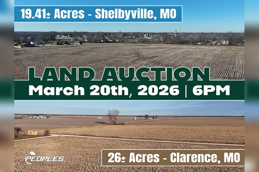 Peoples Land Co, LLC is honored to offer two outstanding smaller tillable tracts at public auction. The sale will be held at the American Legion Hall located at 520 East Maple St., Shelbina, MO 63468 on March 20, 2026 at 6:00 p.m. These tracts have been cared for at a top level for many years by the Shriver Family and offer the new buyer a prime location for many uses. The locations of these farms are the perfect opportunity for a great investment or to expand a farming operation. The farms will be sold as two tracts on a per acre basis.. The tracts consist of the following:
