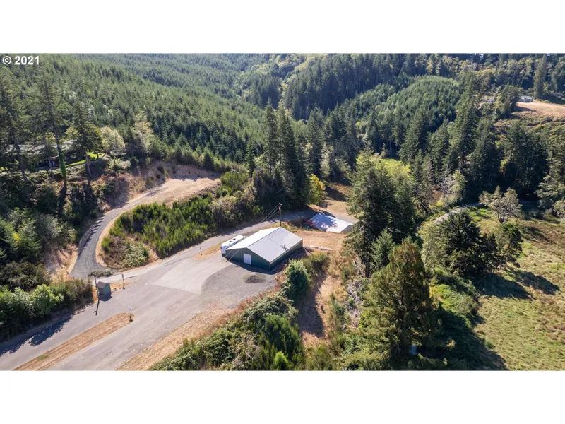 This is the spot you have been looking for! 2+ beautiful, private acres in excellent north bend location to build your dream home. Two large 50X60 commercial grade shops are ready to go with power connected. Nice elevated building site is cleared with fantastic views of the bay and inlet. Paved road access and tons of parking. Will need a well and septic installed at buyers expense. Priced to sell! Call Today...cash only
