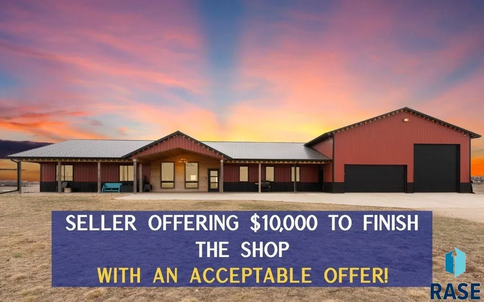 One-of-a-kind shouse on 7 acres in a desirable school district—no corners were cut! Enjoy privacy without sacrificing location. This open-concept home features vaulted ceilings with a wood beam accent, heated floors throughout, surround sound, security system, and a spacious drop zone with built-in lockers. The kitchen boasts quartz countertops, a 9-ft island, custom walnut cabinets, walk in pantry, and a breakfast nook. The massive primary suite is tucked into its own private wing with an en-suite bath featuring a walk-in tiled shower, custom walnut double vanity, and a huge walk-in closet. A custom barn wood door leads to the other wing with a second family room, 4 spacious bedrooms, and 2 full baths. The dual-zone HVAC with separate systems each servicing their own wing of the home ensures everyone is comfortable. With 2,400 sq ft of garage/shop space, an outbuilding isn't even needed! This 8-car heated garage/shop includes a mezzanine, water hookups, floor drain, and tall doors for RV storage. To top it off- the sellers will give you $10,000 to finish the shop with an acceptable offer! Step outside to a covered porch, additional buildings to include a hen house—your perfect mix of function, luxury, and rural charm!