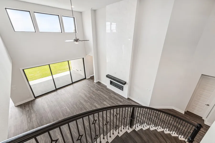 Lake View. Experience elevated living in this breathtaking two story, perfectly positioned with serene lake views. A grand statement begins at the impressive 8’ double front doors, opening to a dramatic foyer with soaring volume ceilings and an elegant curved staircase designed to impress, the formal dining room provides an elegant setting for upscale entertaining and holiday gatherings. The expansive great room showcases seamless open-concept living, flowing effortlessly into the chef-inspired gourmet kitchen. A dedicated spice kitchen provides additional prep space, ventilation for high-heat cooking,Step outside to the covered patio, ideal for relaxation with lake ambiance. The lavish primary suite is a private sanctuary featuring dual vanities, a freestanding spa-inspired soaking tub, two oversized walk-in closets, and upscale designer upgrades throughout. Upstairs,the spacious game room with hidden storage creates the perfect setting for entertainment, recreation, and family gatherings.
