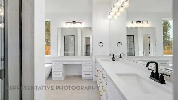 Situated on a highly desirable corner lot, this stunning home showcases a popular model plan with a dramatic double-door entry, soaring 13-foot ceilings, and an open-concept design. Abundant windows flood the home with natural light throughout. The chef’s kitchen is a showstopper, featuring dual islands, a farmhouse-style hooded vent, and upper cabinetry for added storage and style. A cozy fireplace anchors the keeping room, while a private study and dedicated media room provide flexible living spaces. The luxurious primary suite boasts a 67” freestanding tub, and a private guest bedroom with en-suite bath offers ideal accommodations for visitors. Wood flooring extends through all main living areas, including the primary bedroom. Enjoy outdoor living year-round on the expansive wrap-around covered patio.