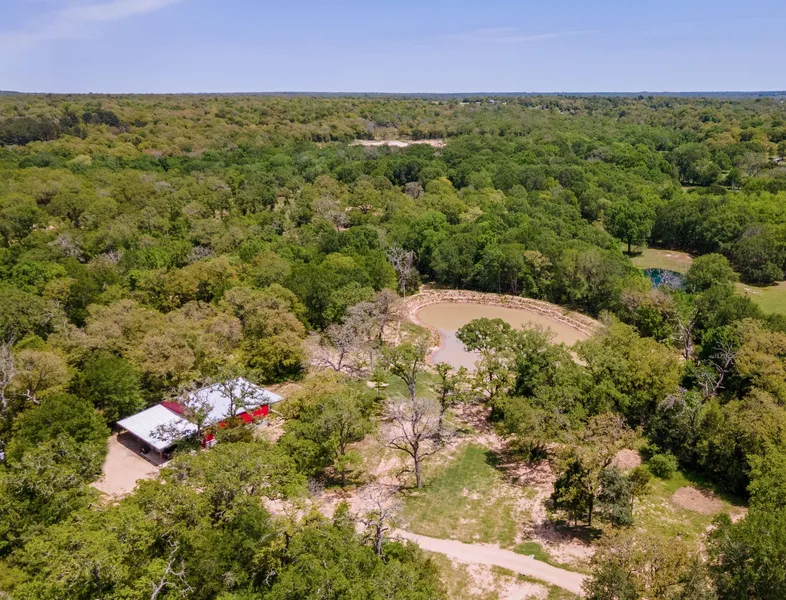 GORGEOUS, SECLUDED BARNDOMINIUM ON 20 BEAUTIFUL ACRES in Silver Spring Ranches. Custom built in 2020 with attention to detail. Spring fed creek. 3/4 acre pond stocked with bass, catfish, bluegill & red cracker. Perimeter fenced. Open floor plan, large windows & French Doors that overlook the pond & property. 24x48 attached carport. Huge storage space in the floored attic accessed from Primary Closet. Large kitchen with level 3 granite countertops, lots of counter space, windows under the white, Shaker style cabinets & drawers, Whirlpool upgraded appliances, 4x8 island with Kraus bay sink, delta faucet, backsplash tile are from Clay imports in Austin. Living room boasts vaulted ceiling, LED recessed lighting. Large open concept Primary bedroom & bath with gorgeously tiled shower. Electric panel installed for outdoor kitchen. RV outlet, hook up. Electric & Water run underground to RV site. SW Milam County Water. Ag exempt. Come see this beautiful homestead!