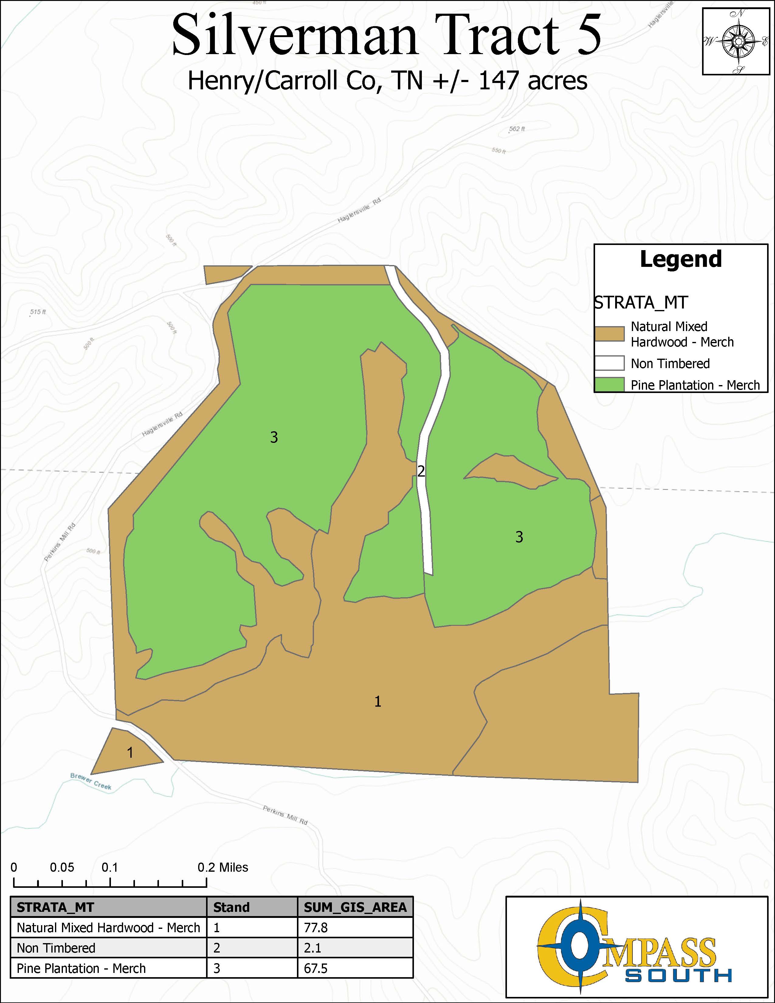 The acreage consists of a mixture of varying ages of planted pines and mature hardwoods offering prime habitat for deer and turkey along with current and future cash flow potential. Brewer Creek passes through the southern portion of the property.