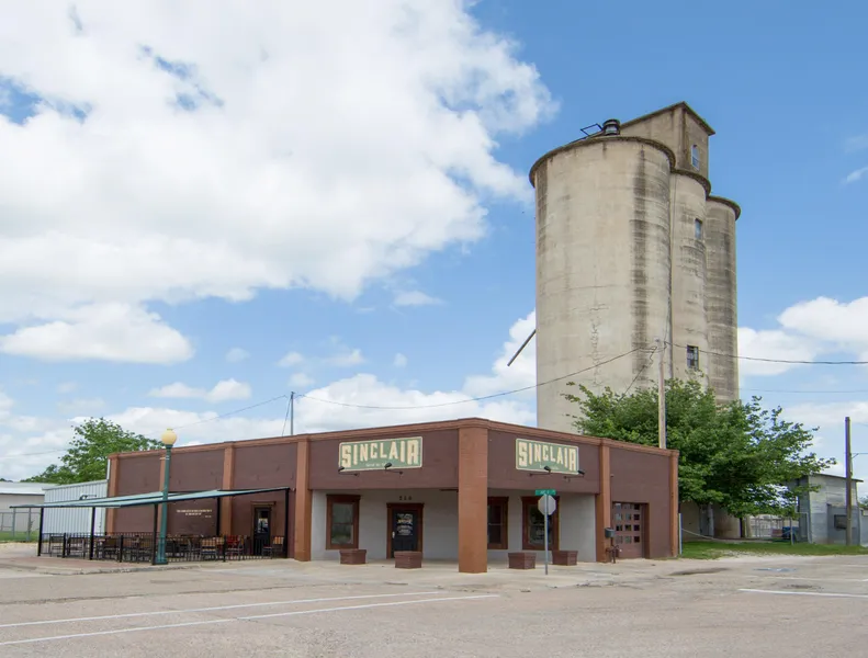 The Sinclair building for sale in historic railroad town of Clifton, Texas was built in 1922 as Sinclair Service Station. The 2890 sq. ft. building was purchased in 2010 by Kaye Robinson Callaway and renovated for use as a restaurant. During the extensive renovation process the original concrete floors, brick walls and wood rafters were kept in tack to preserve and maintain history.