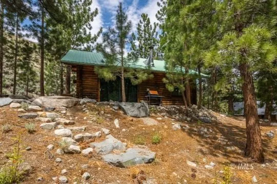 This one of a kind log cabin sits on 2 parcels to equal 1.72 acres. Original Owners since 1984. All logs are 7" thick. Entire cabin insulted with R30. The windows are leaded glass for added insulation. The concrete floor was installed by bridge steel workers. Lights, refrigerator, stove and water heater are run with propane. Propane tank owned. Off the grid! Rock fireplace with 3 heat vents. One air vent from outside. Both parcels have their own water rights and septic. RV hook ups and a redwood sun deck. And was it mentioned...a river runs through it! Creek views from living room and sleeping loft.