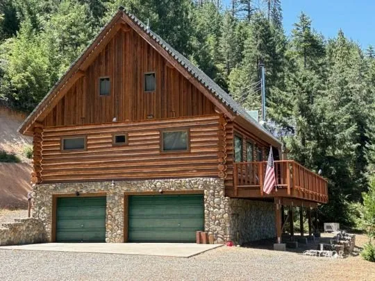 Off-the-grid log home with panoramic views of Mt. Shasta and Trinity Lake. Located up Bowerman Ridge, this seasonal retreat has all you need to get back to nature. The 48V solar system with new lithium batteries and back-up generator provides all the power you will need. Winter access depended upon snowfall to access the property and summer months boasts close proximity to Trinity Lake and new boat ramp/marina. For pilots, there is also a 3700' airport at Trinity Center. Custom cabinets, hand-chinked logs, granite counters, Japanese soaking tub, hardwood floors and Anderson Windows highlight the many extras. Two bedrooms and two baths on the main level with the loft large enough to sleep several more guests. The 1100 sq ft finished garage also houses the washer & dryer and solar inverter and batteries. The well boasts a healthy 10 gallons per minute per seller with gravity feed to house ...