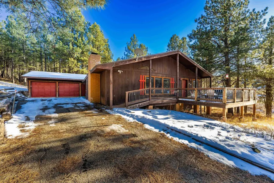 Spacious and inviting, this 3,300 sq ft mountain home is just five minutes from all of Angel Fire Resort's top amenities. Featuring 5 bedrooms and 3 bathrooms, the home offers plenty of room for family and guests, with three separate gathering areas, including a game room with a pool table-perfect for entertaining. The heart of the home is the warm and welcoming living space, anchored by a stunning large stone fireplace where everyone can come together after a day of adventure. After skiing, golfing, or mountain biking, unwind in the hot tub or gather around the fire pit on the expansive deck, ideal for enjoying cool mountain evenings. The primary suite is conveniently located on the main level, offering easy access and comfort. Additional features include a two-car garage and a rare bonus: with the right offer, the Jeep, SXS, and trailer can be included. All of this sits on a level one-acre lot-no steep hills to climb-making year-round access easy and stress-free. This is a true mountain retreat with space, comfort, and unbeatable proximity to everything Angel Fire has to offer.